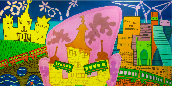 In seinem Projekt UNDERGROUND realisiert er in farbfrohen Großgemälden seine Utopie einer weltweiten Untergrundbahn, die man in Moskau, Paris, Berlin oder London betritt und in New York, Tokyo, Sydney oder Weißenburg wieder verlässt. Menschen, Bauwerke, Signets aus aller Welt vermischen sich zu einer optimistischen Zukunftsvision, in der Nationalität und Rasse keine Rolle mehr spielen!
