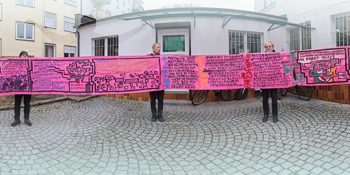 Besonderes Highlight der Werbung für die Ausstellung des monumentalen Wand-Comics von Georgy Litichevsky ist das Panoramabild mit mehr als 360° Umfang!